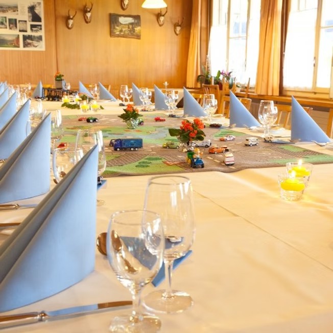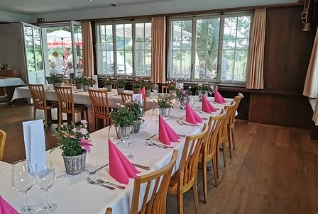 Diese Räumlichkeit ist besonders für Hochzeits- und Taufgesellschaften, Vereinsessen oder andere festliche Anlässe geeignet. Gerne erfüllen wir Ihnen Ihre Wünsche betreffend Dekoration oder Tischanordnung.
