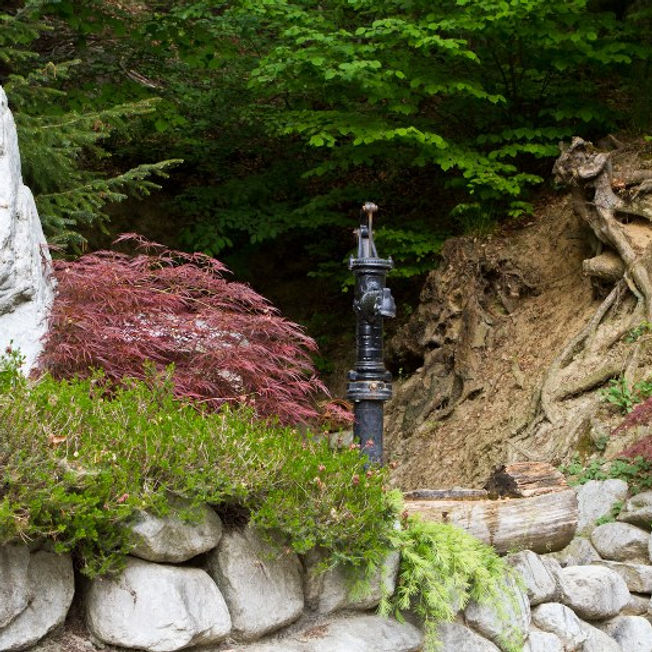 Unsere hauseigene Quelle liegt im Wald gleich nebenan.